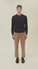 Raffinato girocollo in pregiata lana Merino, lavorato con tecnica rasata finezza 16. La silhouette elegante si adatta perfettamente alla figura maschile. Il nostro modello, alto 185 cm con misure 95cm di petto, 82cm di vita e 92cm di fianchi, indossa una taglia L per una vestibilità impeccabile.
